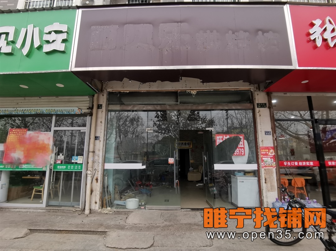睢宁宁海学校对面大门头空铺出租,房东直租无转让费,面积68平方纯一层,房租5.3万一年。店铺地理位置佳,对面就是宁海学校,学生群集其中,人流量大。有近5米宽醒目大门头,门口方便停车。适合各种餐饮小吃,奶茶汉堡,美容美发,蛋糕烘焙等等多种经营,无行业限制,有意者可以来店考察。联系电话:18651788130(微信同号),查看更多门面商铺信息请登录www.open35.com/pu/ 100%真铺源,你找店我免费的专人匹配。