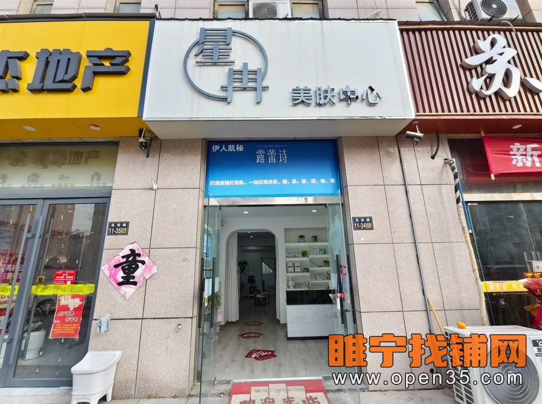 睢宁新城尚品南门精装修美容店转让,面积约130平方上下两层,租金2.8万/年。地理位置佳,位于新城区多个成熟小区中间,仅有的一条社区商业街上,消费群体集中,门口方便停车。有1个大空调,2个小空调等设备齐全,接手即可经营。有意者可以来店考察,转让费面议。联系人电话18651788130(微信同号),查看更多门面商铺信息请登录www.open35.com/pu/ 100%真铺源,你找店我免费的专人匹配。
